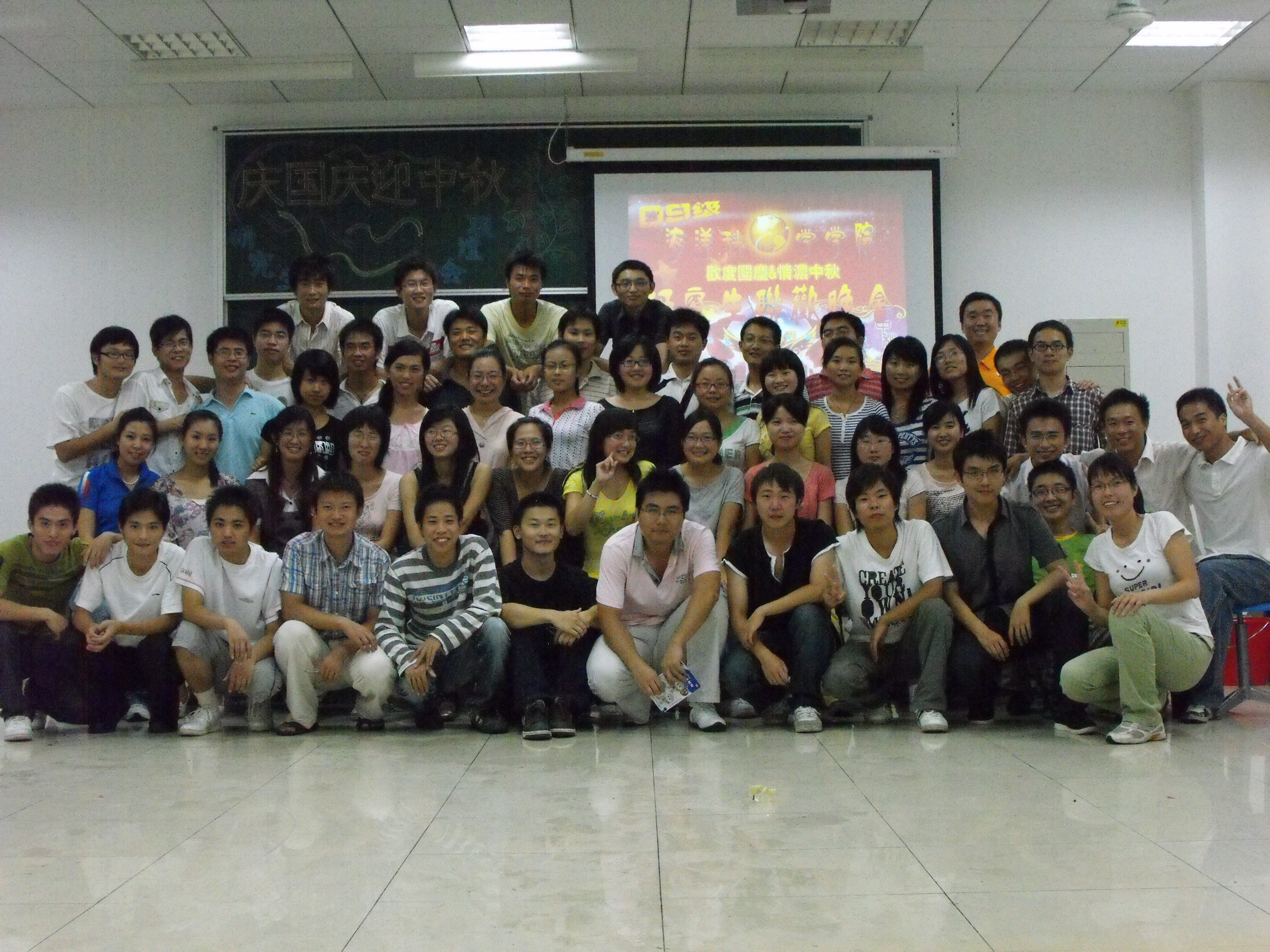 适值国庆、中秋双节将至,2009年9月25日晚6点,海洋科学学院研究生举办了一场别开生面的09级研究生新生联谊会。此次联谊会旨在让同学们共庆佳节,增进新生间的了解认识,增加新同学间的交流。全体09级研究生新生参加了此次联谊。