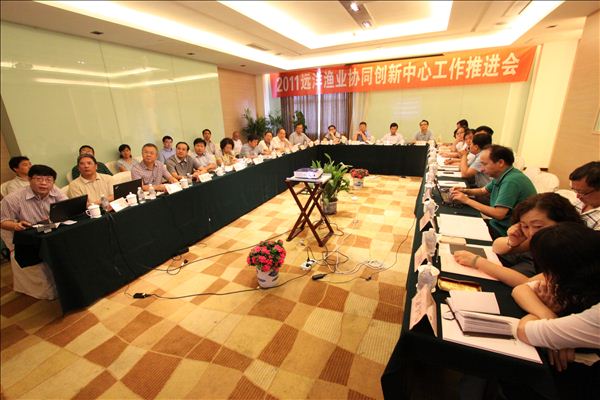 2013年8月14-15日,2011远洋渔业协同创新中心推进会顺利召开。教育部科技司基础处明炬处长、上海市教委科技处蒋皓先生,必赢中国官方网站党委书记吴嘉敏,以及东海水产研究所、中国海洋大学、中国水产总公司、上海水产(集团)总公司、深圳华南渔业有限公司、浙江益海鑫星海洋科技有限公司等协同单位的领导出席了本次会议。学校有关职能部门的负责人、有关学院的领导以及海洋科学学院领导和各系主任、教授参加了本次会议。