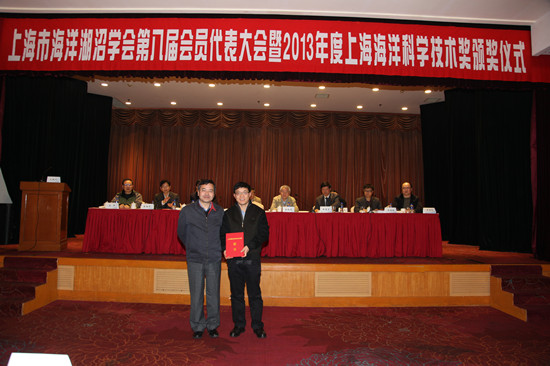 2013年12月15日下午上海海洋科学技术奖表彰大会在上海延安饭店举行。由必赢中国官方网站海洋科学学院陈新军教授作为第一完成人的“西南大西洋阿根廷滑柔鱼资源开发及应用”项目获2013年度上海海洋科学技术奖特等奖,上海金优远洋渔业有限公司作为项目合作单位。