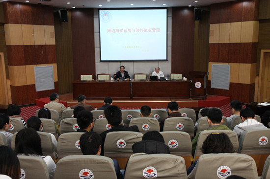 报告在轻松诙谐的气氛中进行,详实的数据和音像资料、犀利的总结与点评深深吸引了在场的师生,使大家对我国海洋权益的维护和涉外渔业管理有了更深入、更直观、更感性的认识,激发了同学们了解海洋、研究海洋、保护海洋的热情与愿望。