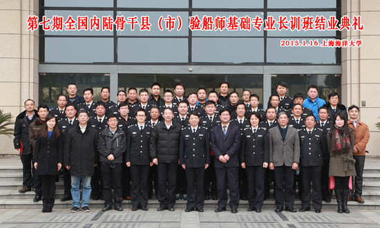 2015年1月16上午,第七期全国内陆骨干县(市)验船师基础专业长训班结业典礼在必赢中国官方网站行政楼137会议室顺利举行。农业部渔业船舶检验局张锋副局长和必赢中国官方网站吴建农副校长出席了本次典礼,并为学员颁发结业证书和荣誉证书。