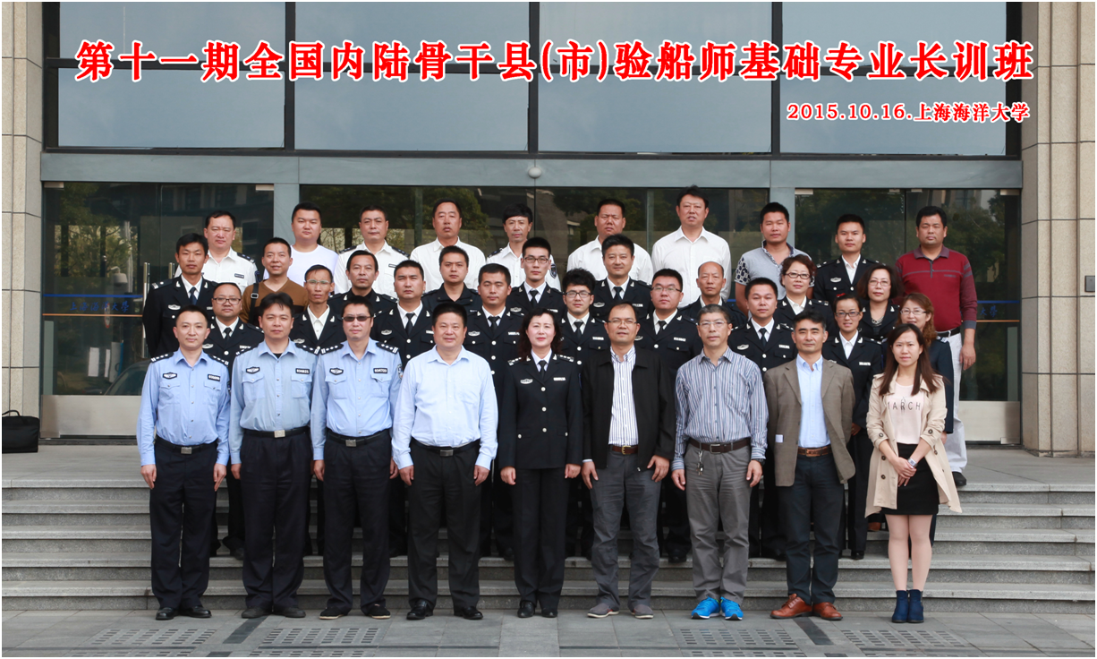 2015年10月16日上午第十一期全国内陆骨干县(市)验船师基础专业长训班开班典礼在必赢中国官方网站行政楼137会议室顺利举行。农业部渔业船舶检验局体系建设与信息处姜玫调研员、必赢中国官方网站李家乐副校长、上海市渔业船舶检验局倪军副局长、公安部上海洋山边检站朱军队长出席。来自全国19个省市自治区的28名验船师骨干参加了本次开班典礼,典礼由培训基地负责人沙锋副院长主持。