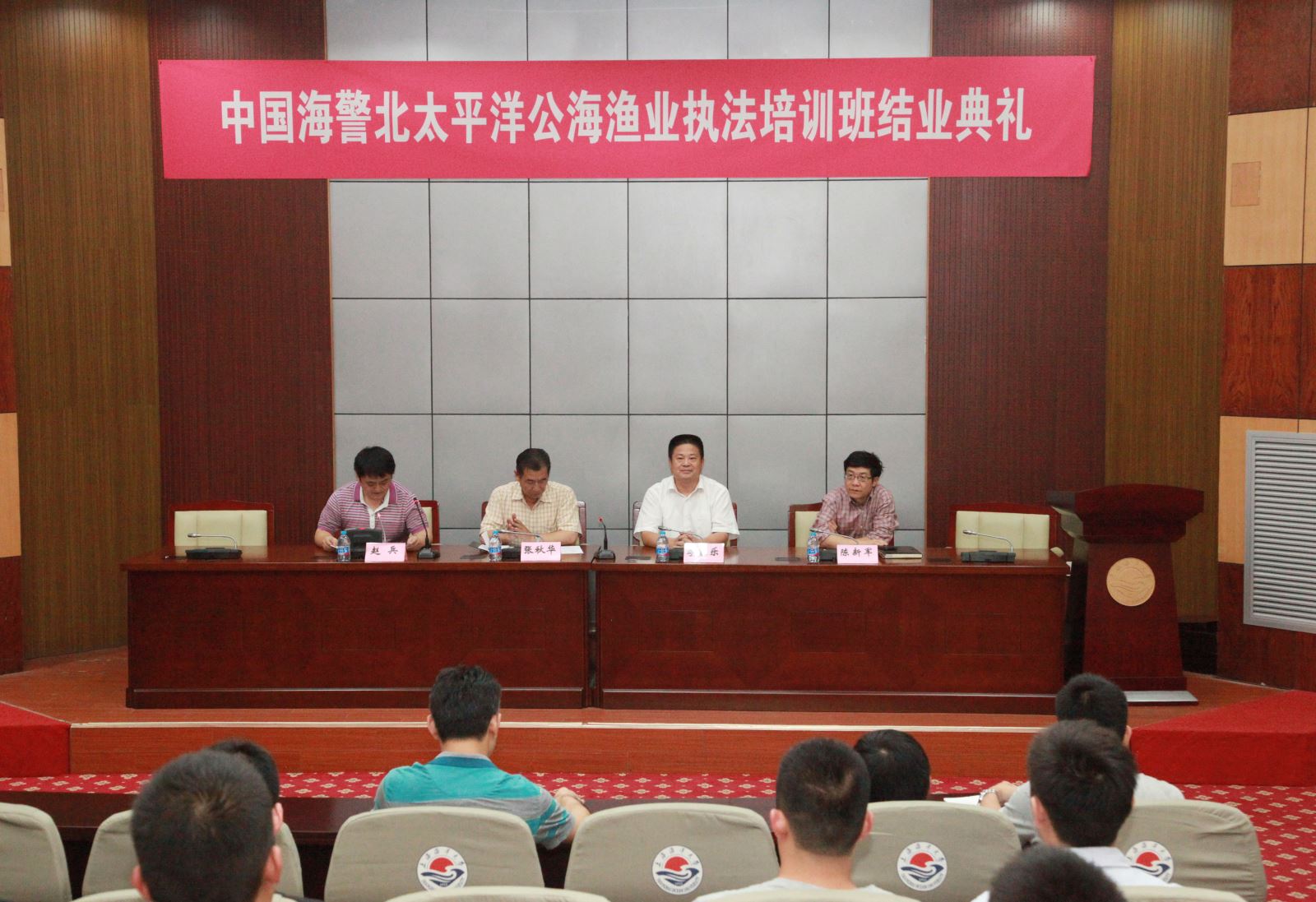 中国海警北太平洋公海渔业执法第二期培训班于2016年9月6日至30日在我校顺利举行。9月29日下午,在必赢中国官方网站行政楼137会议室隆重举行了结业典礼,中国海警局东海分局张秋华副局长和必赢中国官方网站李家乐副校长出席了本次结业典礼并做了重要讲话,会议由中国海警局司令部赵兵调研员主持。参加本次结业典礼的还有海洋科学学院的领导、教师代表以及25名海警学员。