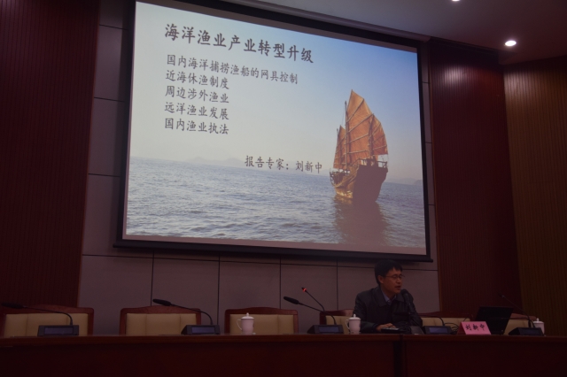 2016年12月17日上午,农业部渔业渔政管理局刘新中副局长受我校水产高峰学科(水产学)、大洋渔业可持续开发教育部重点实验室邀请在行政楼137为在校师生进行了题为“中国海洋渔业转型升级”的专家报告。