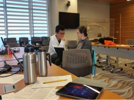 研究生何珊(左图左一)、樊宇薇(右图)在WCPFC秘书处学习