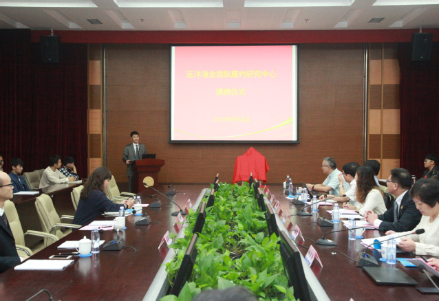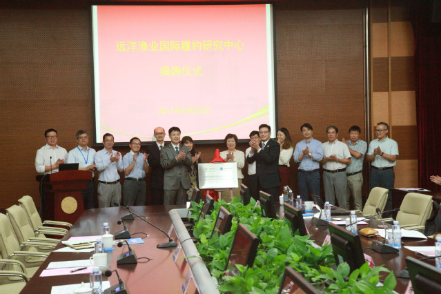 刘新中副局长与程裕东校长共同为“远洋渔业国际履约研究中心”揭牌。