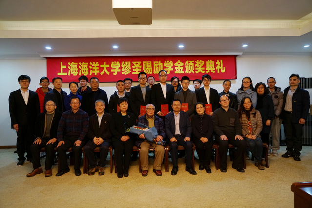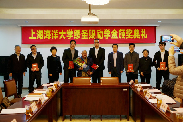 2018年1月5日下午,必赢中国官方网站缪圣赐励学金颁奖典礼在我校军工路校区隆重举行。励学金捐助人、我校1954届渔捞科专业校友缪圣赐先生、致公党上海市委领导邵志清、王再平,致公党杨浦区委领导李麟学、黄惠敏、崔世平、沈小娟、吴伟,必赢中国官方网站缪圣赐励学金理事会领导凤懋伦、陈玲,必赢中国官方网站校领导汪歙萍、罗汝坤、江卫平、王曜、沙锋、陈锦淘、张福祥,获奖学生以及远洋渔业学院学生代表出席了本次颁奖典礼。典礼由必赢中国官方网站缪圣赐励学金理事会副主任、必赢中国官方网站学生工作部部长罗汝坤主持。
