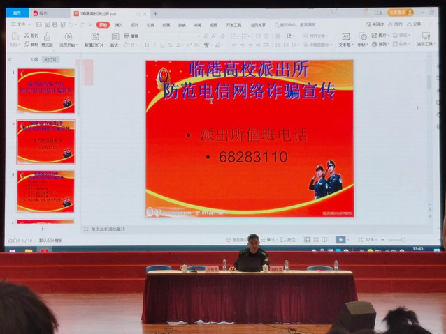 石张东说:“当下电信诈骗日益频繁,天下没有免费的午餐,更不会掉馅饼,同学们要时刻提高警惕、加强防范”,现场反响热烈,同学们受益良多。