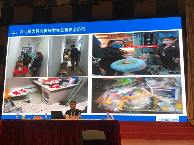 任和平传达了上级文件、会议精神,并学习交流了习近平总书记于中央政治局第28次常委会上提出的“党政同责、一岗双责、齐抓共管”的指导思想。他指出,安全是我们学习生活的底线,没有安全,其他工作再多也无用。要切实贯彻“安全第一、预防为主、综合治理”的安全工作方针,做到安全工作“警钟长鸣,防患未然”。其中学生安全保障工作分为“医、食、住、行”四方面,由于学生公寓具有私密性,其中所在隐患也是最大的,特别是宿舍火灾隐患问题尤为突出。