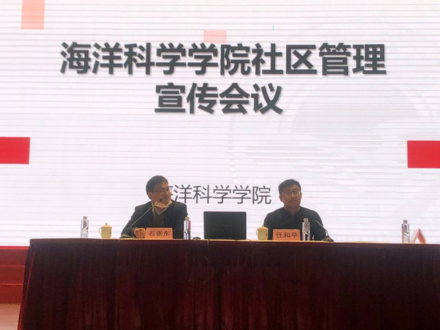 会议由海洋科学学院党委副书记石张东主持,后勤与基建管理处副处长任和平、临港派出所警官周民华、各年级辅导员、2021级本科新生及其他年级学生代表出席了会议。
