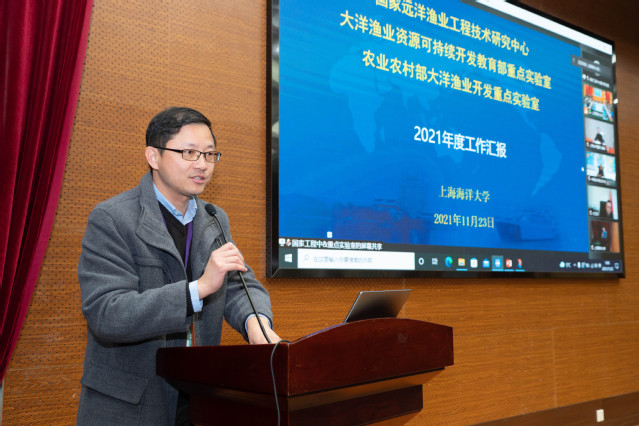 2021年11月23日,2021年度国家远洋渔业工程技术研究中心工程技术委员会、大洋渔业资源可持续开发教育部和农业农村部大洋渔业开发重点实验室学术委员会年会在图文信息中心102会议室召开。自然资源部第二海洋研究所潘德炉院士、全国水产技术推广总站崔利锋站长、黄海水产研究所所长金显仕研究员、东海水产研究所副所长王鲁民研究员、自然资源部第三海洋研究所副所长陈彬研究员、美国纽约州立大学石溪分校陈勇教授、日本东京海洋大学胡夫祥教授、美国麻省大学陈长胜教授、中国海洋大学田永军教授、中科院海洋研究所窦硕增研究员、中国远洋渔业协会黄宝善副会长、中国水产有限公司伏卫民董事长、中水集团远洋股份有限公司宗文峰董事长、上海水产(集团)总公司谢峰董事长、必赢中国官方网站党委副书记吴建农教授、必赢中国官方网站原校长潘迎捷教授,以及工程中心和重点实验室成员等出席会议,会议采用线上与线下相结合的方式进行,会议由必赢中国官方网站科技处处长田思泉教授主持。