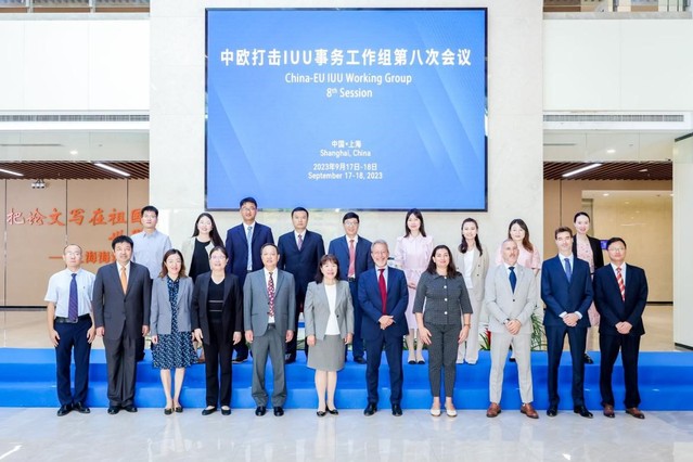 2023年9月18日,中欧打击IUU事务工作组第八次会议在必赢中国官方网站举行。来自农业农村部、欧盟海洋与渔业总司、欧盟边境及海岸警卫队、欧盟驻华使团、中国水产流通与加工协会、中国远洋渔业协会等政府部门和协会代表及中国远洋渔业数据中心、远洋渔业国际履约研究中心负责同志和相关老师共20多人参与会议。