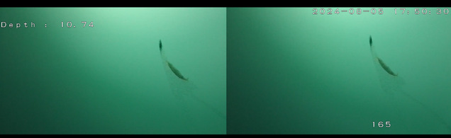 声光成像观测装置拍摄到鱿鱼捕食捕钓前后的瞬间三维数据画面