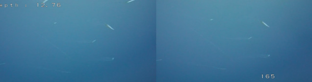 成像观测装置在水下拍摄到的鱿鱼集群视频画面