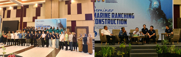 同时,中印尼双方联合举办了海洋牧场发展研讨会,共有130名来自印尼海洋事务和渔业部、非政府组织、学术界和新闻媒体的代表参加了本次研讨会。研讨会上,中方张硕教授、王学锋教授分别做了海洋牧场、增殖放流技术创新相关的口头报告,印尼哈山努丁大学Syafyudin Yusuf教授、印尼国家研究与创新局(BRIN) Suryadi Saputra博士分别介绍了海洋牧场对修复珊瑚礁、增殖各类渔业资源的重要作用。