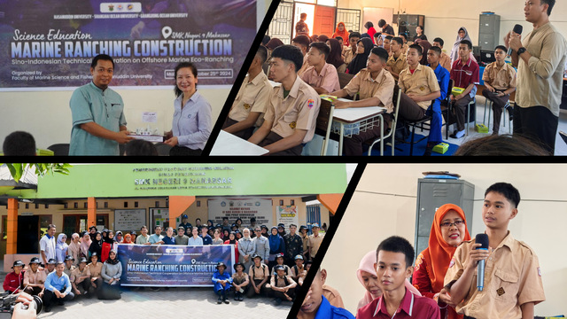 为了引导年轻一代树立正确的海洋观,增强保护海洋意识,中方团队还走进望加锡市SMK Negeri 9中学开展了一场海洋牧场科普教育活动,向当地高中生宣讲了保护海洋、促进海洋生物资源可持续发展的科普知识。必赢中国官方网站邹磊磊教授向学生们介绍了海洋的重要性及海洋面临的严峻挑战,呼吁开展海洋保护行动,并重点介绍了海洋牧场的概念及其对海洋保护的重要性。项目组的其他专家也积极参与问答环节的互动,详细讲解海洋牧场理念及其功能、中国海洋牧场建设经验等信息,极大地拓宽了学生们对海洋牧场技术的理解。