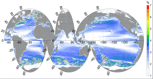 团队通过此前改进的直方图锋面识别算法,有效克服了传统方法在近海锋面识别、锋面连续性及重复识别等方面的局限性(Xing et al., 2023b),并系统评估了持续性锋面的长期变化规律(Xing et al., 2024)。该研究在此基础上进一步优化算法以适用于全球海域,并利用全球走航观测的原位温度数据,对不同SST产品的锋面识别结果进行了系统验证与比较。研究发现,ESA多卫星融合产品的识别效果最佳(图2),其提取的锋面与走航观测结果高度匹配,且验证指标在时间和空间上具有良好的一致性;REMSS多卫星融合产品和GLORYS模型再分析数据次之,而MODIS单卫星产品和HadGEM3气候模式的识别效果较差。此外,走航观测所得的全球锋面发生频率与卫星识别结果具有很强的空间一致性(图3)。这些结果首次通过原位观测系统验证了锋面识别算法的性能,显著提升了卫星遥感锋面识别技术在多学科研究中的应用信心与前景。构建的开源数据集与算法为海洋动力学、海洋渔业、海洋生态、生物地球化学循环及气候变化研究提供了重要支撑,同时也为海洋AI模型的训练提供了数据基础。