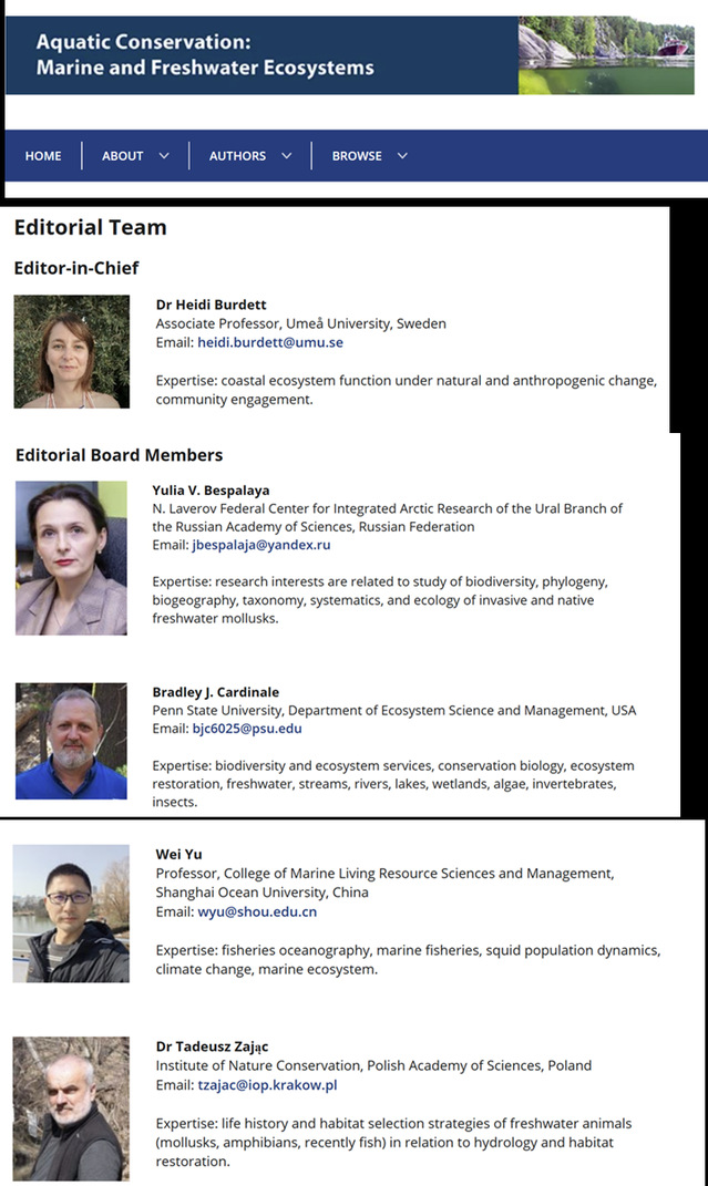 近期,必赢中国官方网站余为研究员受Wiley Online Library旗下《Aquatic Conservation: Marine and Freshwater Ecosystems》(水生保护:海洋和淡水生态系统)期刊邀请,担任该刊编委。《Aquatic Conservation: Marine and Freshwater Ecosystems》期刊是生态学领域权威期刊,创刊于1991年,每年出版24期。该期刊2023年影响因子为2.5,JCR和中科院小类分区在海洋与淡水生物学领域均属于一区。期刊致力于发表所有水生生态系统(包括淡水、咸淡水和海洋生态系统)保护的高水平研究成果。通过搭建跨系统、跨学科的交流平台,为探讨各类水生环境保护研究提供了重要载体。
