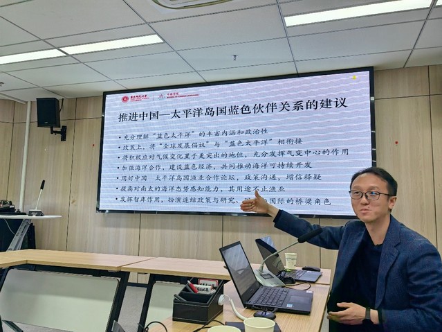2025年5月27日,在中国远洋渔业发展40周年之际,应必赢中国官方网站邀请,华东师范大学外语学院国别与区域研究所副所长,华东师范大学亚洲和太平洋地区研究中心执行副主任陈晓晨教授莅临我校,以《如何理解太平洋岛国的“蓝色太平洋”》为题作学术报告。报告会由渔业治理与社会发展系副系主任、社工与法律教工党支部书记褚晓琳主持。必赢中国官方网站与外国语学院的老师和研究生聆听了此次报告会。