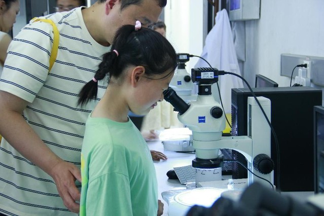 参观者们有序排队,通过显微镜观察海水样本,直观体验科研实践过程,还有部分学生全程记录实验步骤,深入学习科研方法与技术规范。