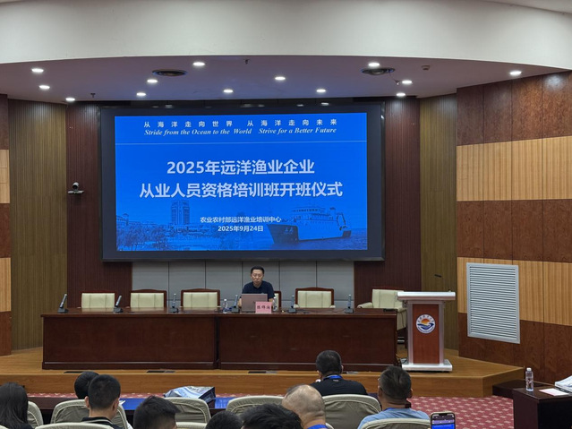 为适应和履行国际渔业治理新要求,不断提高企业履约人才储备水平,进一步提升远洋渔业企业综合管理和国际履约能力,同时满足各远洋渔业企业从业人员资格证书培训需求,根据《农业农村部关于促进“十四五”远洋渔业高质量发展的意见》(农渔发〔2022〕4 号)、《农业农村部办公厅关 于印发〈远洋渔业人才建设三年行动方案〉的通知》(农办渔〔2023〕10 号)等文件要求,农业农村部远洋渔业培训中心按照农业农村部渔业渔政管理局部署,于9月23-25日在上海成功举办了2025年远洋渔业企业从业人员资格培训班,来自沿海各有关省(市)51家远洋渔业企业的百余名企业经理、部门主管等管理人员参加了培训。