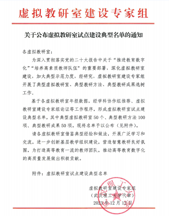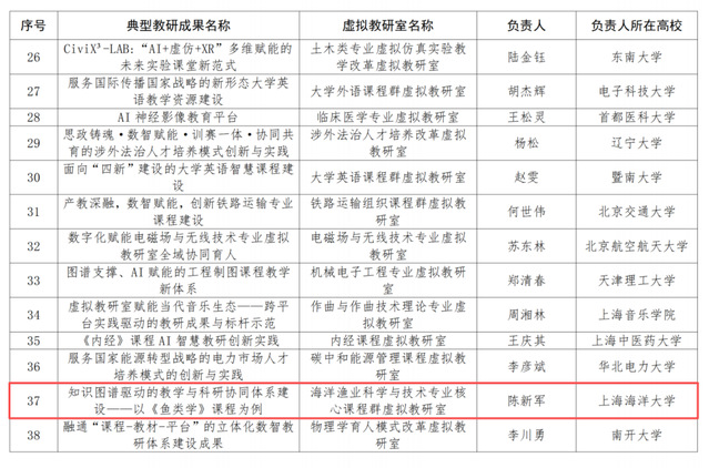 2025年,海渔虚拟教研室的阶段性成果入选教育部虚拟教研室试点建设典型教研成果。教研室围绕教育数字化与智慧教学发展需求,形成了“知识图谱驱动的教学与科研协同体系建设——以《鱼类学》课程为例”的典型成果。该成果以《鱼类学》课程为切入点,依托虚拟教研室平台构建课程知识图谱,积极探索教学与科研协同发展的创新路径,为专业核心课程群的教学改革与教研创新提供了重要支撑。