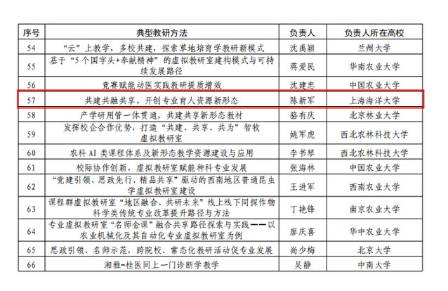 2023年,海渔虚拟教研室的教研方法入选教育部虚拟教研室典型教研方法。围绕新时代远洋渔业高质量发展的需求,教研室秉持“共建、共融、共享”理念,凝练形成“共建共融共享,开创专业育人资源新形态”的典型教研方法。在此框架下,教研室以“知渔、爱渔、强渔”为育人导向,以“海洋渔业+X”高层次复合型人才培养为目标,系统推进专业核心课程、实践教学、国际化教学与大学生创新创业等多维育人资源的整合与教学改革,取得了扎实而积极的成效。
